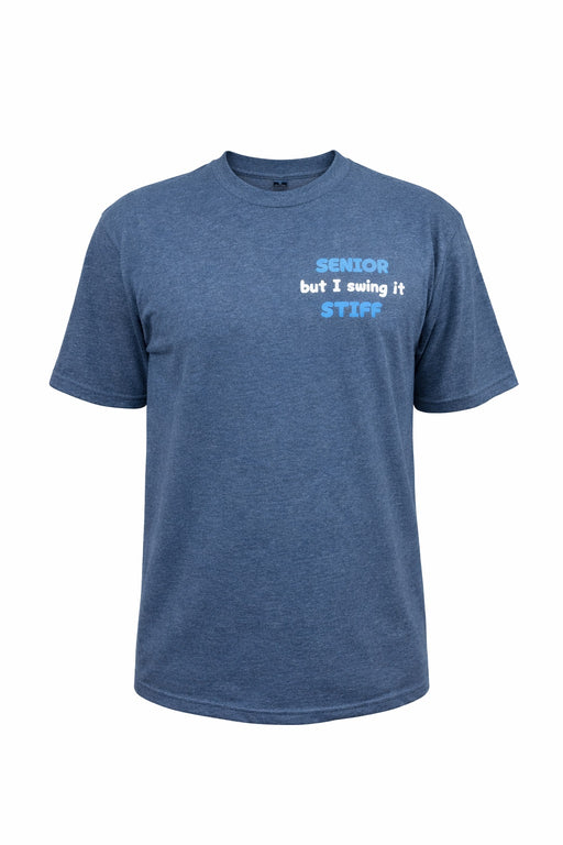 View full detailsThe Stiff Senior TEE in Heather Navy is crafted from a soft, breathable fabric for a comfortable fit. Featuring the phrase 'Senior, but I swing it ...