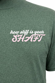 The 'How Stiff Is Your Shaft' Heather Army TEE features a soft, durable fabric blend and a relaxed fit for all-day comfort. Its bold graphic design adds a unique touch to casual or outdoor wear.