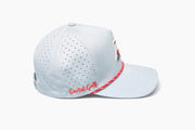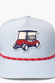 This baby blue rope hat delivers lightweight polyester comfort with bold style.